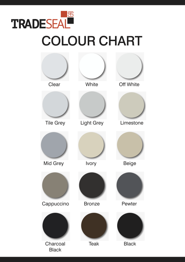 | Colour | Beige, Bronze, Cappuccino, Charcoal Black, Clear, Ivory, Light Grey, Limestone, Mid Grey, Off White, Pewter, Tile Grey, White |